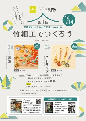 その掲載店の中から、嵐山 いしかわ竹乃店様がミーナ京都で竹細工を使った体験会をワークショップ形式で開催します。
