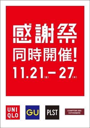 ユニクロ感謝祭は11月21日(金)から11月27日(木)まで!ぜひこの機会にお買い求めくださいませ。